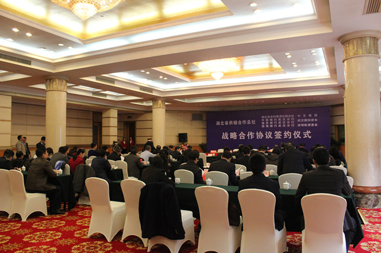 2015年12月4日,湖北合作投資集團有限公司(以下簡稱“投資集團”)與中百控股集團股份有限公司(以下簡稱“中百集團”)、武漢國創(chuàng)資本投資有限公司(以下簡稱“國創(chuàng)資本”)、深圳前海乾源股權(quán)投資基金管理有限公司(以下簡稱“前?;?rdquo;)在武漢東湖賓館就成立供銷中百互聯(lián)網(wǎng)金融服務(wù)公司共同簽署了戰(zhàn)略合作協(xié)議,湖北省政府副省長甘榮坤,省供銷社主任趙東風(fēng),副主任明平安、張嵐、楊杰、黃實海及相關(guān)處室負責(zé)人,及簽約四方公司主要負責(zé)人共同出席簽約儀式。省政府副秘書長聶昌斌主持簽約儀式,湖北日報、湖北廣播電視臺等相關(guān)媒體進行了現(xiàn)場報道。