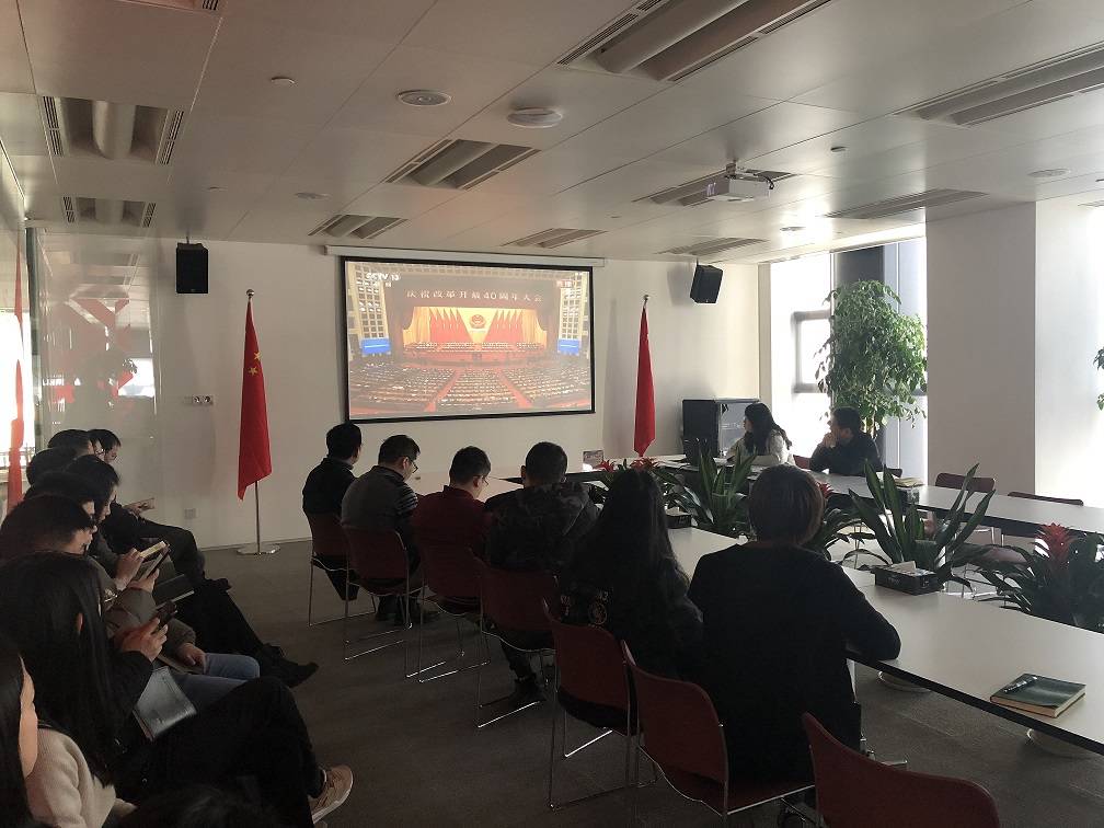 2018年12月18日上午,投資集團(tuán)組織全體黨員干部職工集中收看慶祝改革開(kāi)放40周年大會(huì)現(xiàn)場(chǎng)直播,認(rèn)真聆聽(tīng)習(xí)近平總書(shū)記的重要講話(huà)。